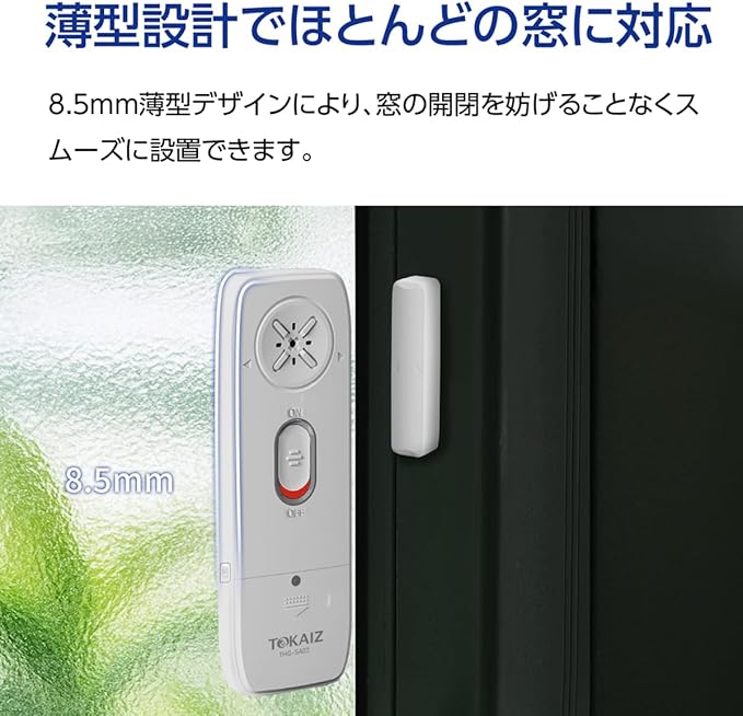 TOKAIZ 防犯アラーム 窓 ドア用 振動【衝撃検知+開放検知】130dB大音量 一戸建て 侵入警報 高精度センサー搭載 防犯ブザー 大人 女性 子供 開放 ホームセキュリティ 待機時間1年 THG-SA02