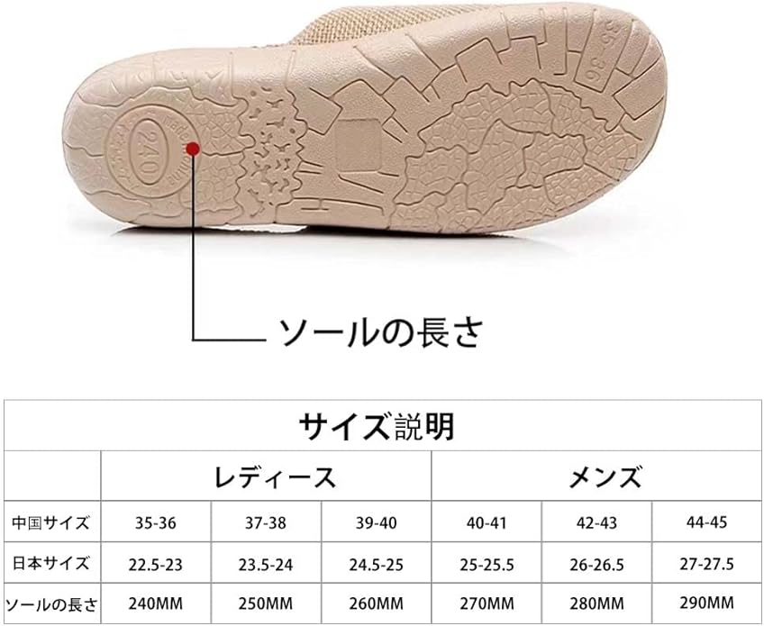 ※お客様への知らせ: スリッパの裏面に記載されている「240mm」ような数字は靴底の長さを表示しており、室内スリッパ夏用のサイズを表すものではございません。 (靴底面に36-37ような数字は海外向けのサイズ寸法になります)ご存知頂ければと思います。 海外製品の為日本のサイズと異なる場合もございますので、サイズ詳細をご参照してから選択ください。 ※寸法は平置きにて計測し、若干誤差がある場合がございます。