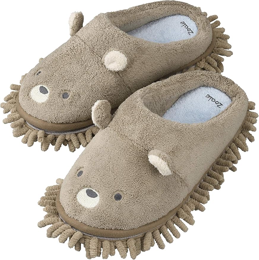 【ながら床掃除】履くだけで楽々床掃除が出来る、お掃除スリッパ。裏面のもじゃもじゃモップが、床の上のホコリや水分をキャッチしてくれます。