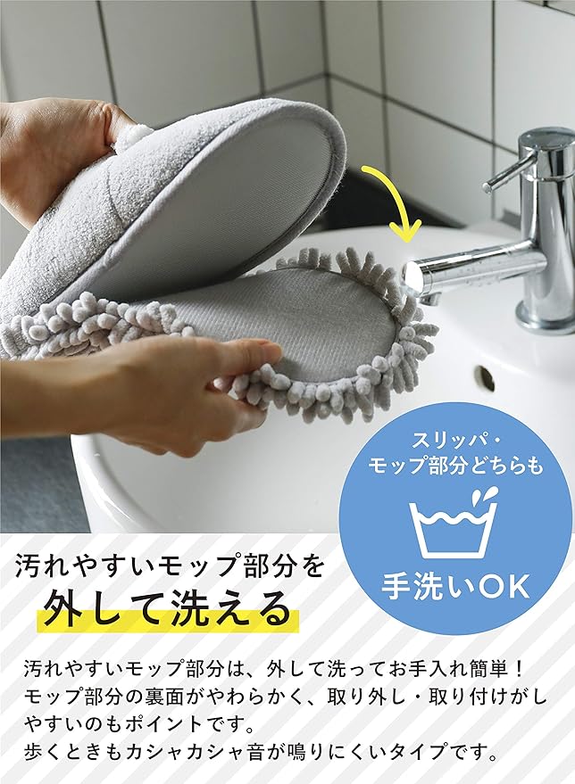 【手洗いOK】汚れやすいモップだけ外して洗えるので、お手入れも簡単。スリッパもモップ部分もどちらも手洗いできます。