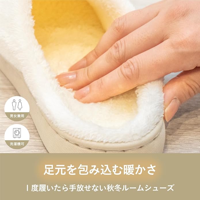 もこもこ素材を利用しふわふわあたたかく包み込まれる感覚と、履いているのを忘れるような軽量設計で、快適な履き心地を実現するルームシューズです。