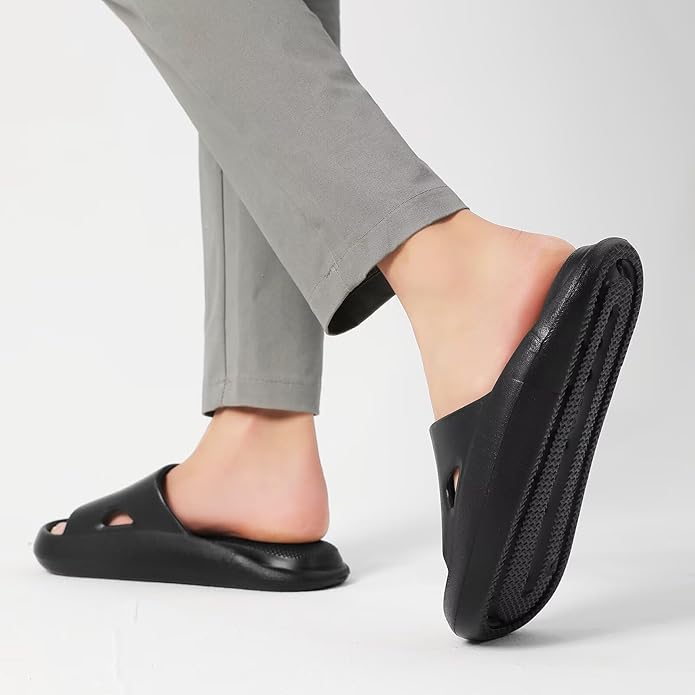 【衝撃吸収 長時間快適】厚底4cmの多層クッションが優れた弾力を発揮。へこみにくく、適度な反発力で長時間立っても疲れにくい設計です。追加のエアクッションで衝撃吸収力アップ!通勤・立ち仕事にぴったりの室内用スリッパ。