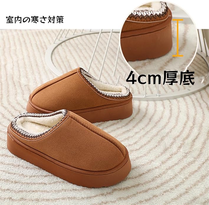 【素材】表地:フェイクスエード;中敷:フェイクファー(ご注意:①靴底にて表記された「250、260、270など」という数字は靴底の長さを指し、スリッパのサイズではございません。②サイズ表を読み上げてからご購入ください)