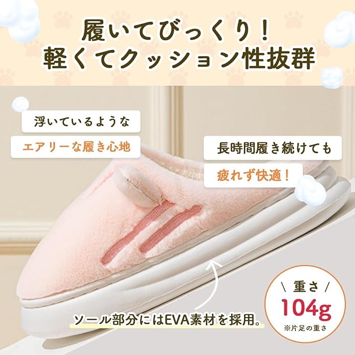 ✅【暖かいのに軽い】長時間履いても疲れないような設計にしました。重さも208gと軽く、ふわふわなのに軽くて普段使いに最高です。