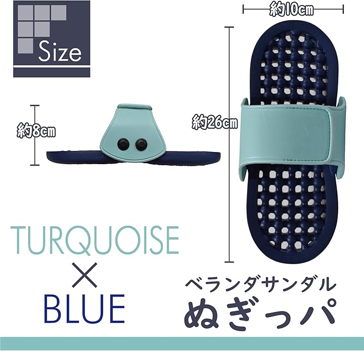 【サイズ(約)】全長26 幅10 高さ8cm(片足)cm【カラー】ネイビー(※2色展開。お好みでお選びください)【重量(約)(片足)105g【素材】本体:EVA樹脂、ボタン:ABS、面ファスナー:ナイロン【生産国】中国