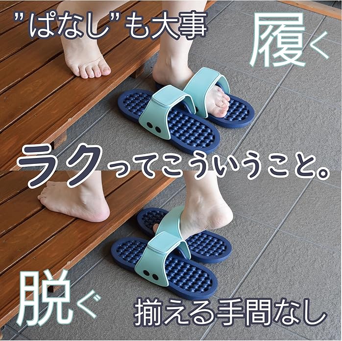【手軽に履けて整頓不要だから様々な場所で】出入りが頻繁な玄関、勝手口、ベランダ、縁側用におすすめ。また水や汚れが溜まりにくい仕様のため衛生的に使え、ユニットバスや屋根のないベランダにも◎※外履き用ではございません、長時間の歩行には適しません。
