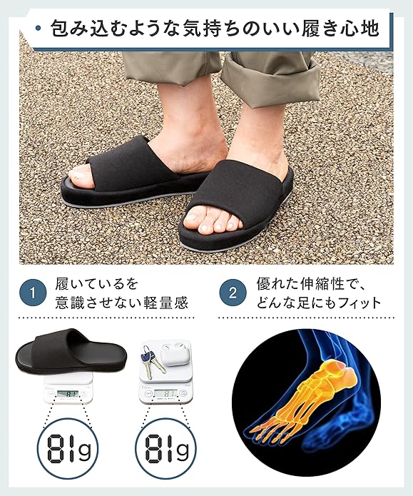 【超軽量】 履いていることを意識させない軽量感(片足81グラム)で疲労を軽減!