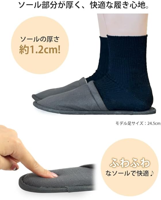 ソール部分が厚めで、快適な履き心地。