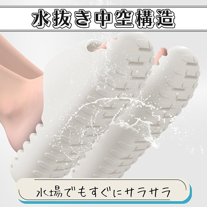 【水はけ抜群で、足が濡れない快適さ】ソール全体に施された穴あき構造が特長。優れた水はけ性能で、すぐに乾き、雨上がりにサンダルを履いても、靴下が濡れたりせずに常に快適な状態に保ちます。
