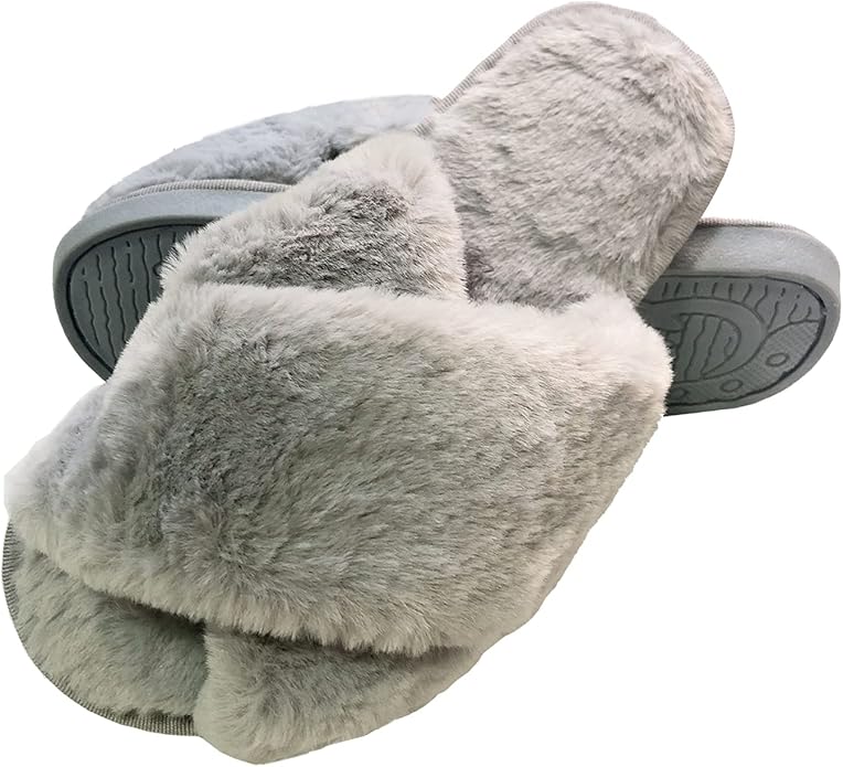 【製品仕様】グレー、ピンク、ブラック、ホワイト、4色3サイズを展開しており、おしゃれなデザインのクロス仕様、好みに合わせてご自分にピッタリな一足を選んで頂けます。ボリュームのあるふわふわのフェイクファーが360度どこから見てもおしゃれで可愛い。シンプルカラーなので毎日のコーデに合わせやすく、気軽に履けちゃう万能のサンダルです。恋人や家族とのお揃いスリッパとしてもおすすめです。
