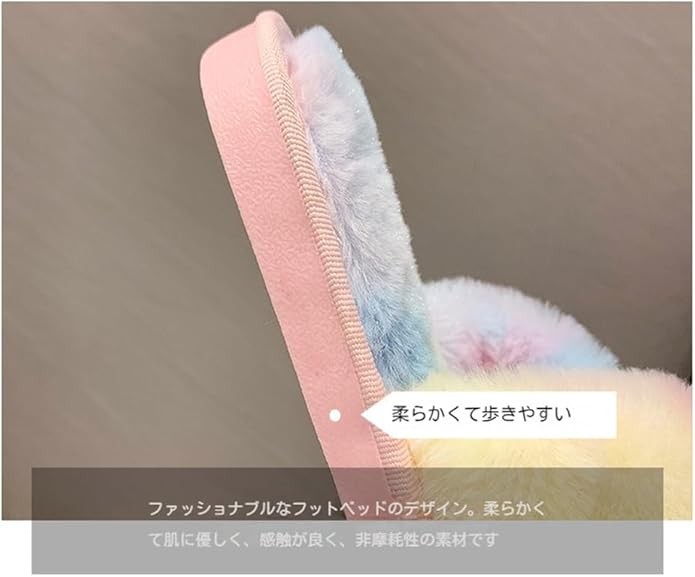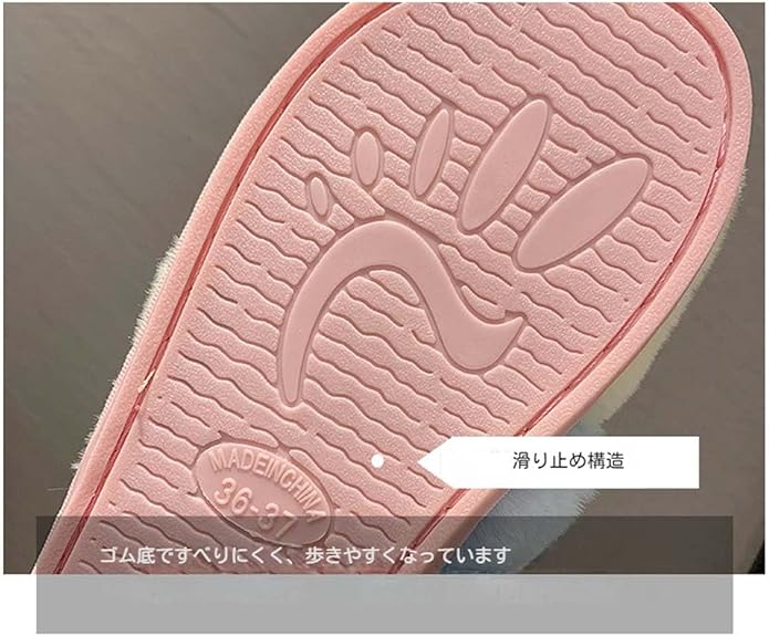■『毛足長で愛らしい一足!』 毛足が長いふわふわ感が気持ちよく、かわいいデザインのスリッパです。足全体を温かく包み込むこのスリッパは、ゴム底で滑りにくく、履き心地も抜群です。素足で直接触れる毛足の感触は、一度履けばこの心地よさに夢中になります。 ゴム底ですので、室内用としてだけではなくベランダでもご使用できます。