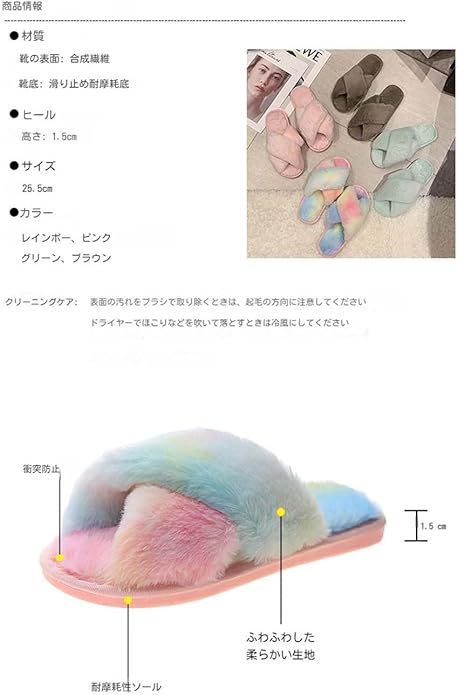 ■『毛足長で愛らしい一足!』 毛足が長いふわふわ感が気持ちよく、かわいいデザインのスリッパです。足全体を温かく包み込むこのスリッパは、ゴム底で滑りにくく、履き心地も抜群です。素足で直接触れる毛足の感触は、一度履けばこの心地よさに夢中になります。 ゴム底ですので、室内用としてだけではなくベランダでもご使用できます。 ■サイズ 25.5cm、高さ 1.5cm ■材質 合成繊維 靴底:滑り止め耐摩耗底