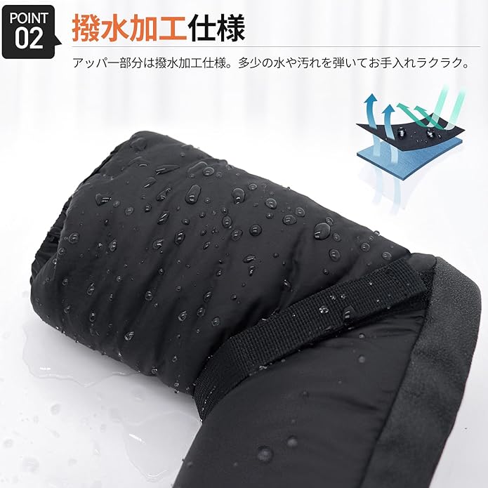 [撥水加工] 术リエステル/ナイロンのアッパ一素材には優れた撥水性を備えています。