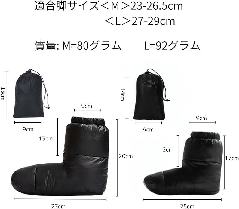 【生地】高耐久400Dナイロン生地に撥水加工が施されており、アウトドアでの水濡れを防ぎます。600フィルパワー(FP)の高品質ダウンにより、優れた保温性能を発揮し、寒い環境でも快適に過ごせます。※2025年より新製品では底に滑り止め加工を追加しました。画像と少々異なりますので、ご了承ください。