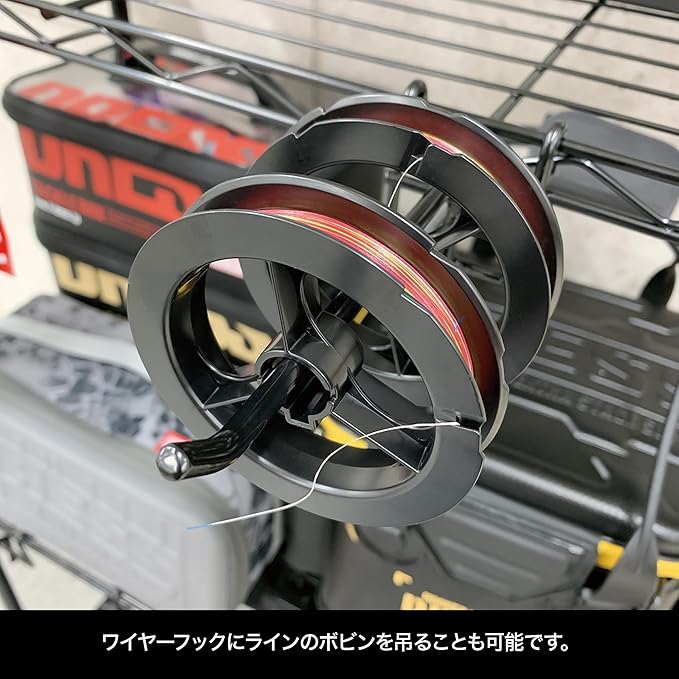●ワイヤーフックにラインのボビンを吊ることも可能