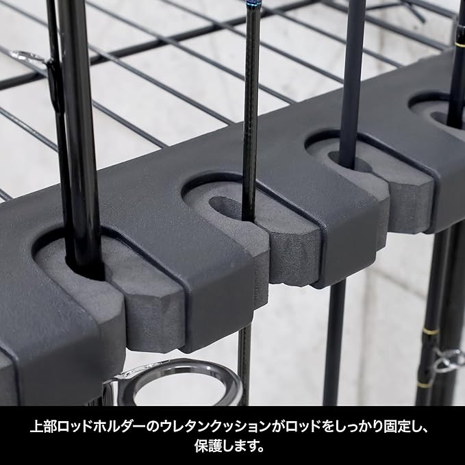●上部ロッドホルダーのウレタンクッションがロッドをしっかり固定し、保護します
