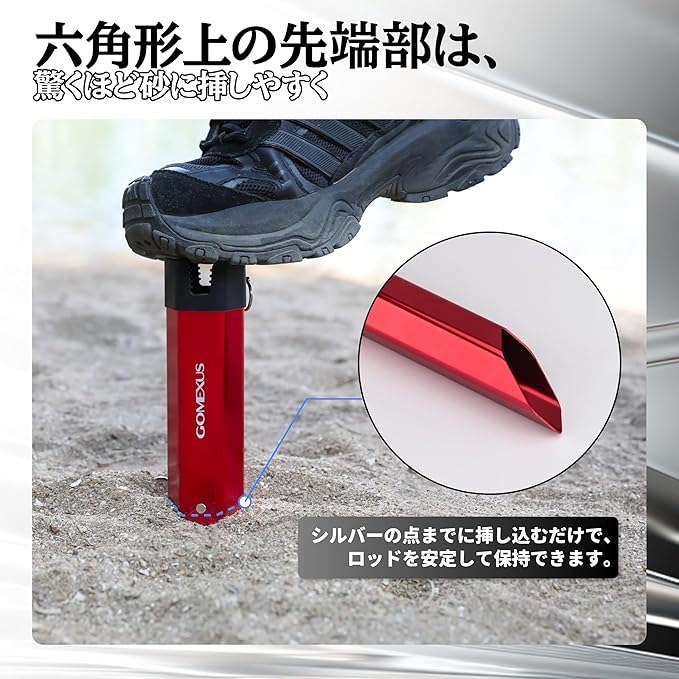 【六角形構造で高い安定性】 六角形ベースで風に強く、砂浜でも倒れにくい設計。ビーチでの釣りに安心。