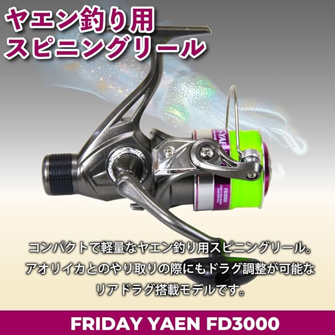 モデル名 おり釣具 ヤエン釣り用 ライン付き スピニングリール フライデー ヤエン FD3000