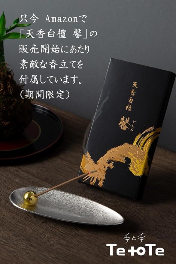 線香 天香白檀「馨」【期間限定 香立て付】 100本 25g【 天然香料100%使用 】 長さ10㎝ 燃焼時間約20分(お手頃サイズ)本白檀 日本製 [古き良き日本のお香 ] 約 天然由来 スティック 香木 びゃくだん インセンスお線香 線香 | etshop