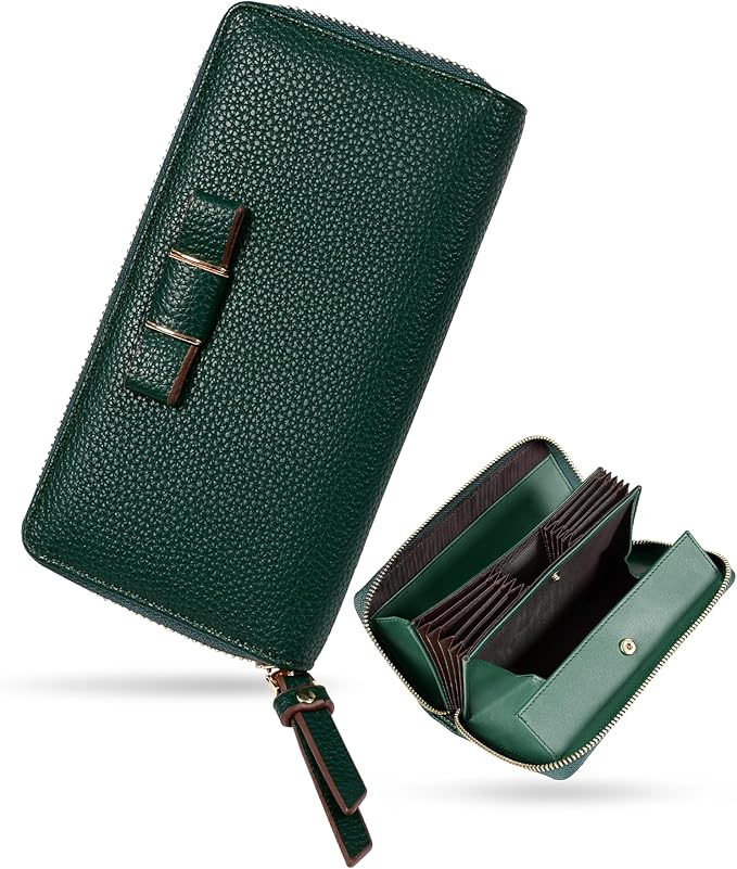 財布 レディース 長財布 本革 大容量 カード縦入れ 16枚 スキミング防止 BOX型小銭入れ お札を折らない リボン 可愛い 18cm プレゼント (グリーン)