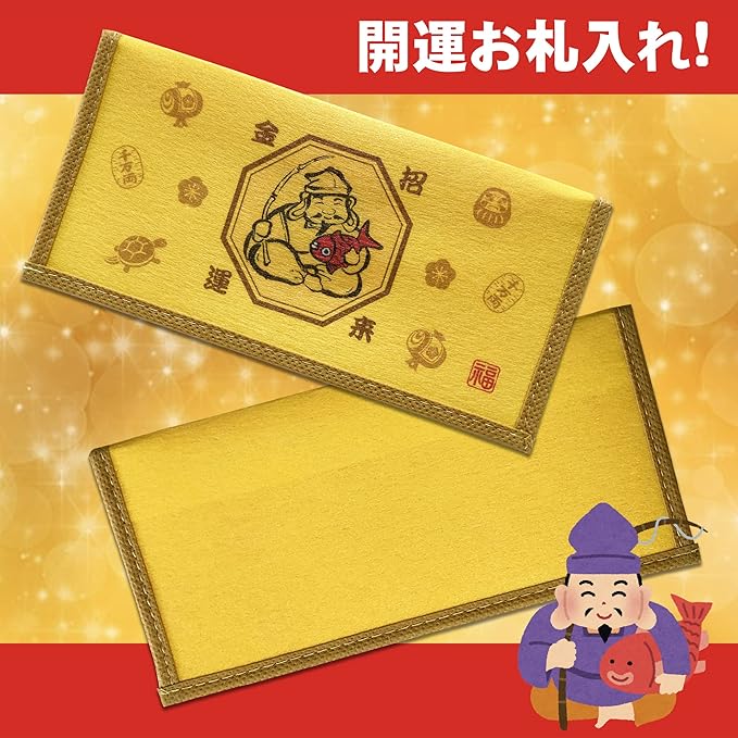 [LamPlanning] 金運アップお財布セット 開運 金運 グッズ ゴールド 1万円札 幸福 七福神 お守り 宝くじ 風水 ハッピー 運気上昇 お札入れ (開運 恵比須様&1万円札セット) | etshop
