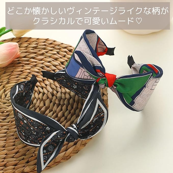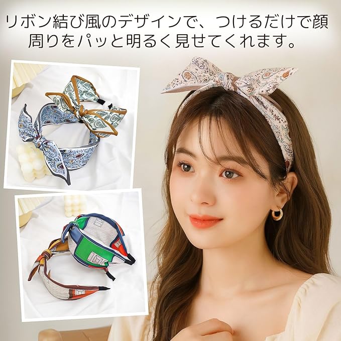 ✨【トレンド感のあるスカーフ風デザイン】 まるでスカーフを結んだような華やかさが魅力のカチューシャ。リボン結び風のデザインで、つけるだけで顔周りをパッと明るく見せてくれます。普段使いからお出かけまで幅広く活躍するおしゃれアイテムです。