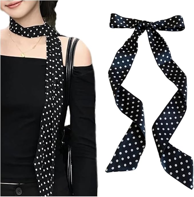 FASELE スカーフ チョーカー ヘッドスカーフ ヘアバンド ヘッドバンド 長め 細め ヘアタイ ドット柄 リボン ヘアタイ 多用途 ヘアアクセサリー ネクタイ 飾り小物 ベルト 帽子飾り おしゃれ 日常 通勤 プレゼント 贈り物 | etshop