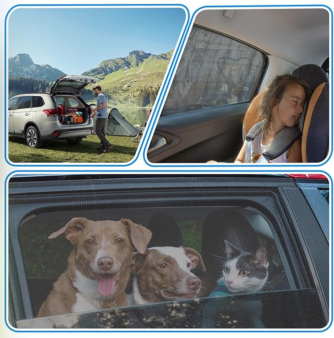 自然の風を楽しむ:窓を開放して涼しい風を取り入れことで、車内の温度を下げ、空気の循環を促し、効率的に換気ができて、快適な睡眠環境を確保できます。車内の温度上昇を抑えられるだけでなく、余計なエアコン稼働を減らしてバッテリーへの負担も和らげることもできます。夏場に車中泊をする場合、熱気対策と虫の侵入防止に欠かせない車中泊グッズです