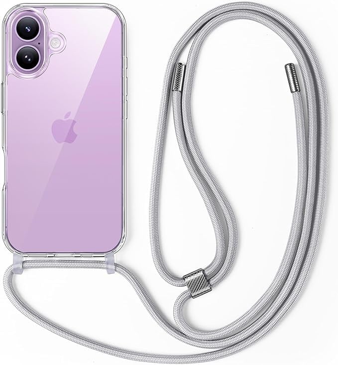 Aunote 対応 iPhone17ケース 薄型 軽量 耐衝撃 携帯 紐付き 斜めがけ 織りストラップ付き ネックストラップ ショルダー長さ調整可能 落下防止 紛失防止 対応 いPhone17 ケース クリア+グレー ショルダース | etshop