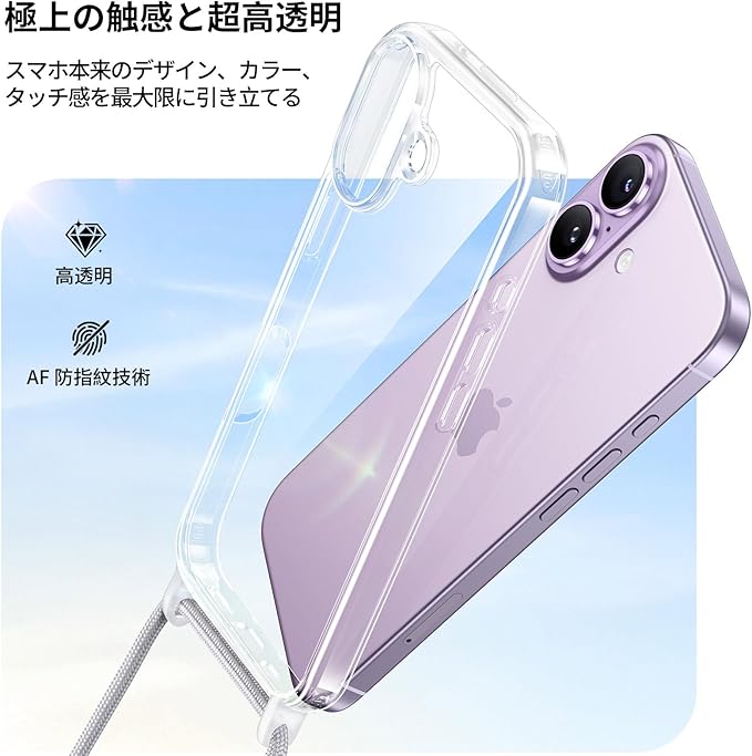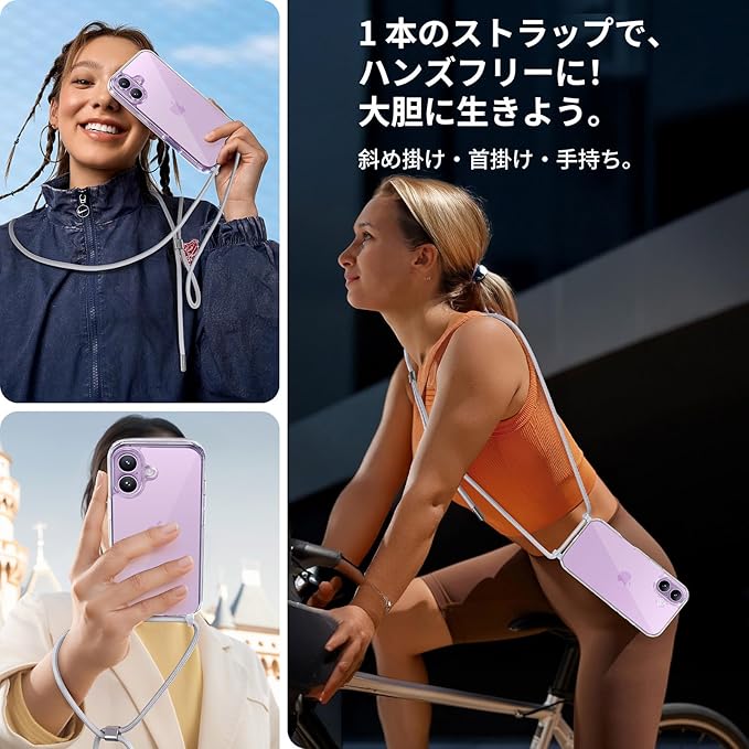 【便利なストラップ付き、両手を解放】 専用ストラップを装備し、【首や手首に掛けて】持ち歩けます。外出時やスポーツ中でもアイフォン 17ケースを安全に持てるので、落下や紛失の心配がありません。