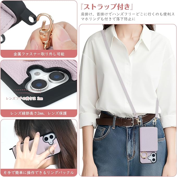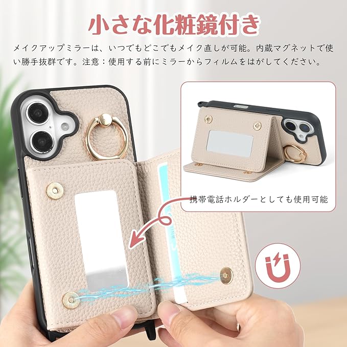【収納機能】ケース内側には3つのカードスロット女性には必須のミラーもう付きます!カード類や紙幣、名刺などが収納できます。普段の生活に便利をもたらします。ケースには鏡が内蔵されているので、外出先でいつでもどこでも化粧直しができる。