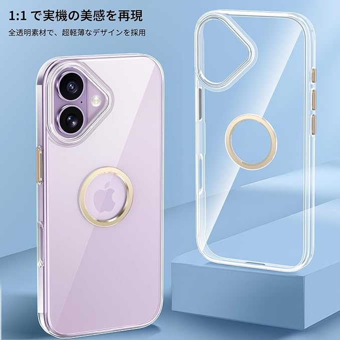 Aunote 対応 iPhone17ケース【にlogoゴ専用の円形ホールを】軍用級保護耐衝撃 黄ばみ防止 衝撃吸収 頑丈カ薄型 軽量 ミニマリストア 対応 いPhone17 ケース クリア+金ロゴカットアウト | etshop