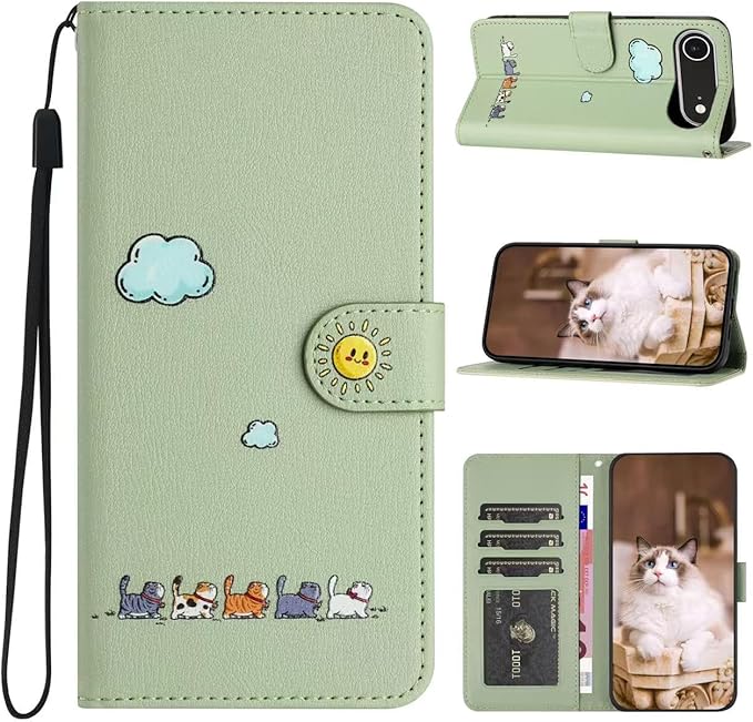 適用の iPhone 17 Airケース 手帳型 いphone17Air 手帳ケース 財布型 シンプルなのに可愛いデザイン ストラップ付き エンボス加工猫柄 うれしい気持ち スタンド機能&カード収納付き iPhone 17Air用スマホケース 薄型 防水 の耐久性 滑り防止 可愛い 贈り物 (iphone 17Air,グリーン) | etshop