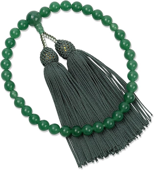 【 素材 】 主玉:アベンチュリン (約8mm)、 親玉:アベンチュリン(約12mm)、天玉:アベンチュリン(約6mm) 【 房 】 :人絹頭房 とくさ 【 包装 】 :OPP袋入