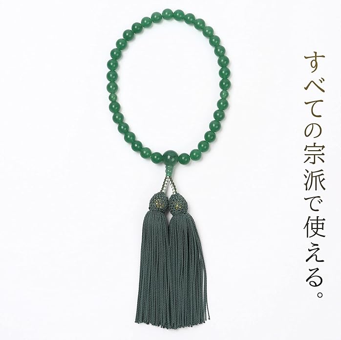 喜芳工房 女性用 数珠 念珠 京念珠 アベンチュリン 8mm玉 すべての宗派で使える 片手略式/緑 グリーン エメラルド 証明書付
