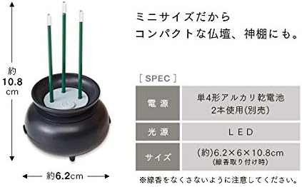 消し忘れの心配無し!火を使わないLED線香。自動消灯で安心してお使い頂けます。小さなお子様がいるご家庭や一人暮らし、ペットがいるご家庭に。ミニサイズで、コンパクトな仏壇、神棚にも。約10分間の自動消灯機能付。線香の本数は調整可能。※線香をなくさないように注意してください。