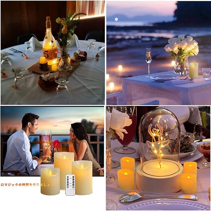 LEDキャンドルライト ロウソク 本物の炎のようにゆらめく3点セット 暖色光 火を使わない ゆらゆら揺れる 安全 省エネ 専用リモコン付き 明るさ調整 電池式 LEDライト キャンドル | etshop