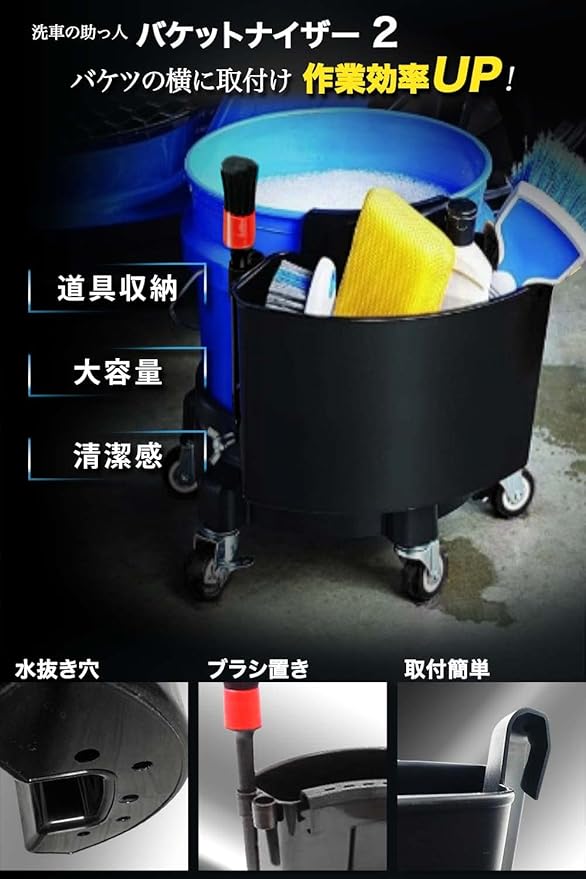 ✅【 ほど良いサイズ感 】 ▶︎ブラシ、モップ、スポンジ、ミットなどのツールをまとめて収納することができます。 ▶︎洗車が楽になり快適にすることができます。✅【 小型・大容量 】 ▶︎本体サイズ:高さ19.4cm 横27.8cm 奥行13.7cm 、重さ:300g ✅【 安定感抜群のフィット感 】▶︎バケツの縁に固定させてしっかりと支えます。 .