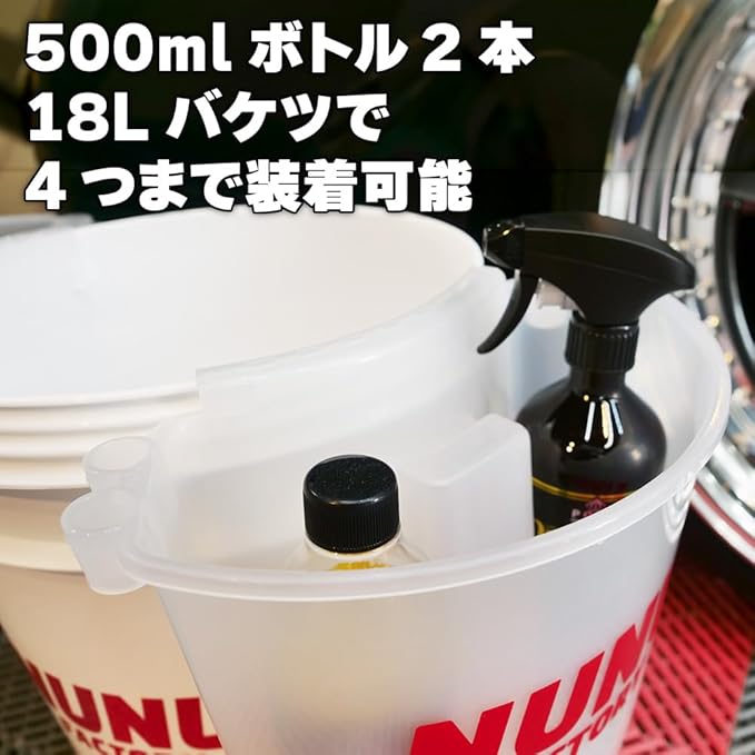 NUNUバケツ18Lはもちろん20Lのバケツで最大4つまで取り付け可能で 国内・海外ほとんどのバケツに対応しています。
