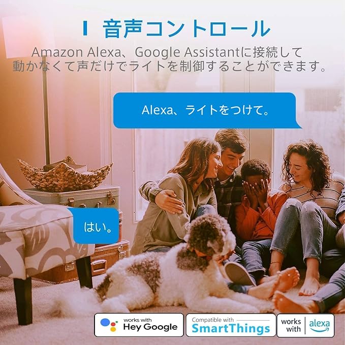 【音声コントロール】「アレクサ、照明を消して」寝る前にベッドから出る必要がなく、話しかけるだけで簡単に寝室の照明を消すことができます。Amazon Alexa、Google Homeなどにも対応しています。