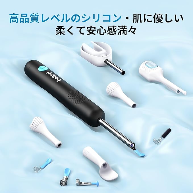 【充実の付属品で多様なニーズに応える】 乾性・湿性両方の耳垢に対応した豊富な耳かき先端に加え、耳・鼻・口の観察用アタッチメント、専用ピンセット、点薬サポートツールを同梱。あらゆる使用シーンとユーザーの多様な要求にお応えします。