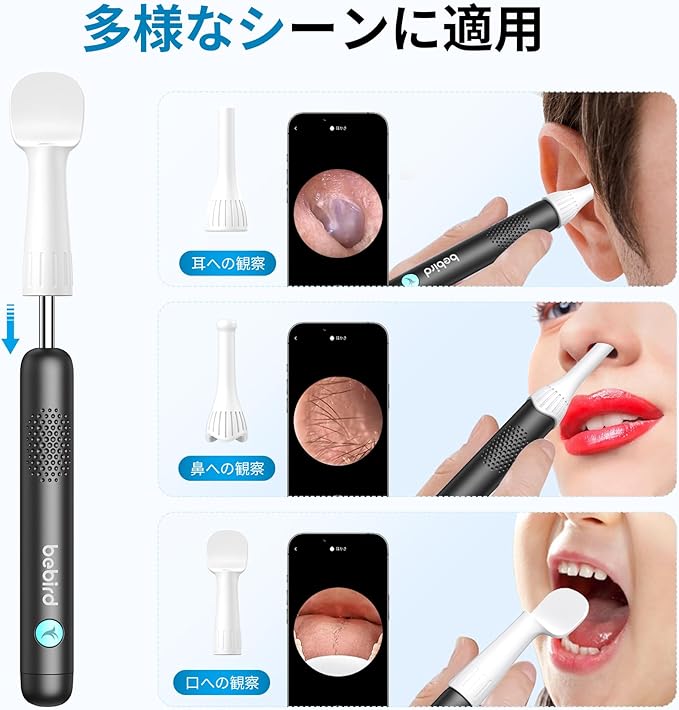 【Bebird 第3世代R1九月新登場】カメラ付き耳かき|1000万画素|画質強化|3.1mm極細レンズ|明るさ調節可能LEDライト付き|ピンセット付属|耳口鼻観察カバー付属|点薬補助具付き|Bebird専用アプリ|IP67防水|耳垢取り 耳掃除 イヤースコープ 子供 大人 | etshop