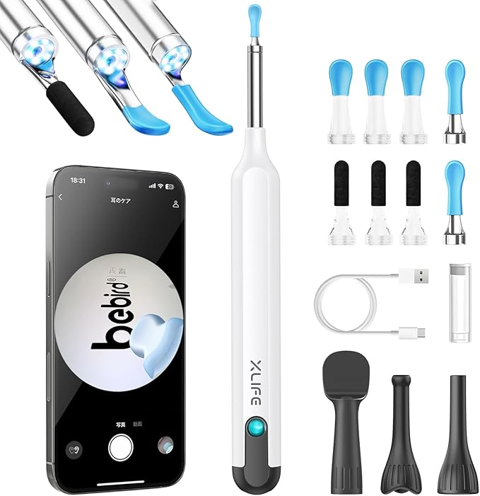 Bebird 新世代XliFE 九月登場 耳かき カメラ付き|12本セット|乾性・湿性耳垢の両方に対応|1000万画素|耳口鼻観察セット付属|明るさ調節可能LEDライト付き|極細3.5mm レンズ|IP67防水|耳垢取り|耳掃除 |イヤースコープ|子供 大人 ホワイト | etshop