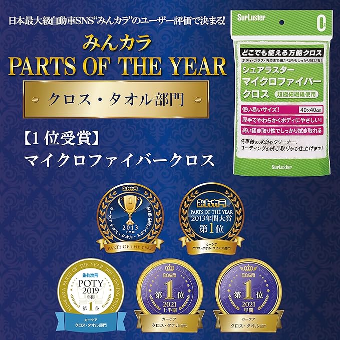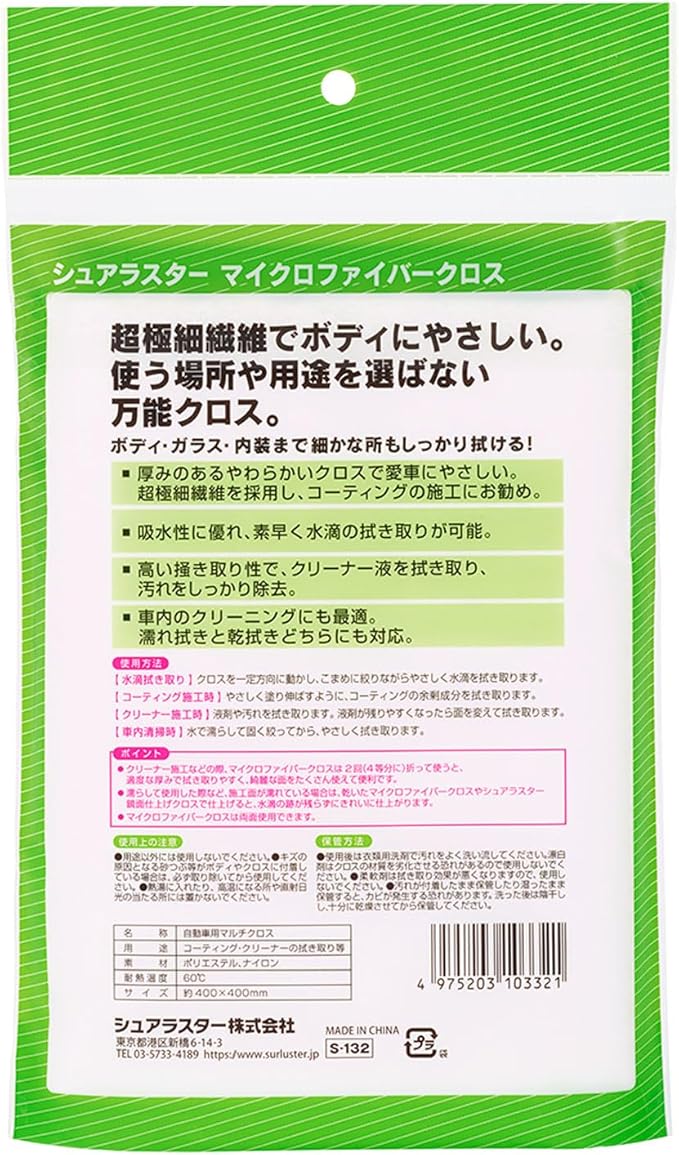SurLuster(シュアラスター) マイクロファイバークロス 40cm 40㎝ 拭き上げ 吸水 洗車タオル 洗車用品 掃除 傷防止 コーティングの拭き上げ ボディ ガラス 内装 S-132 | etshop