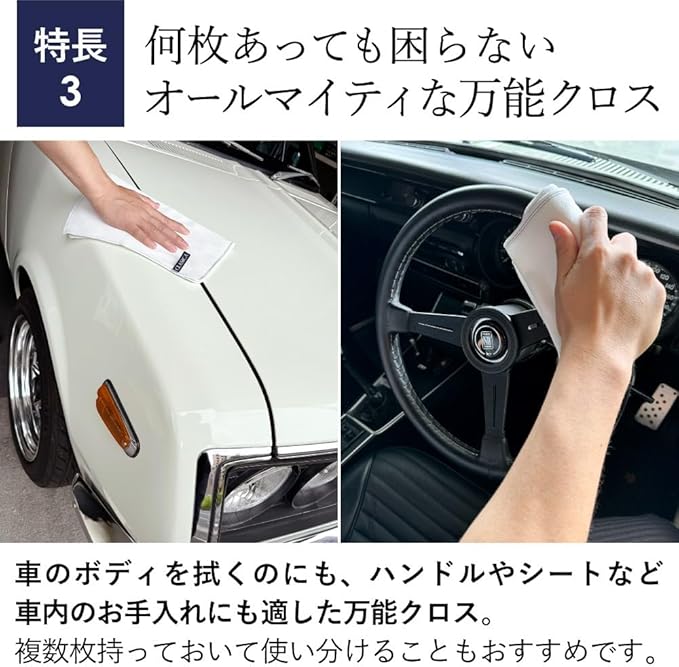 ヨネキチの車両販売部門であるクラシックカー専門店「CLASICA」が手掛けた日本製マイクロファイバークロス