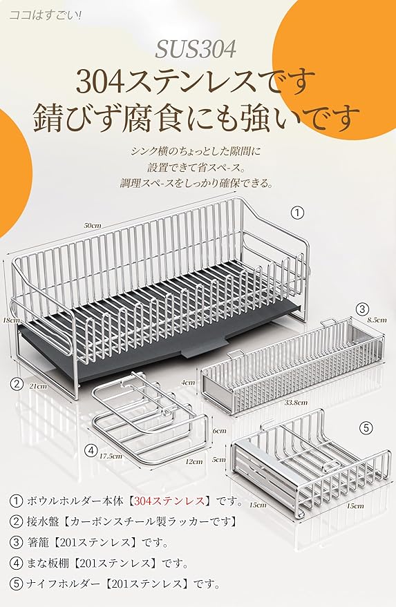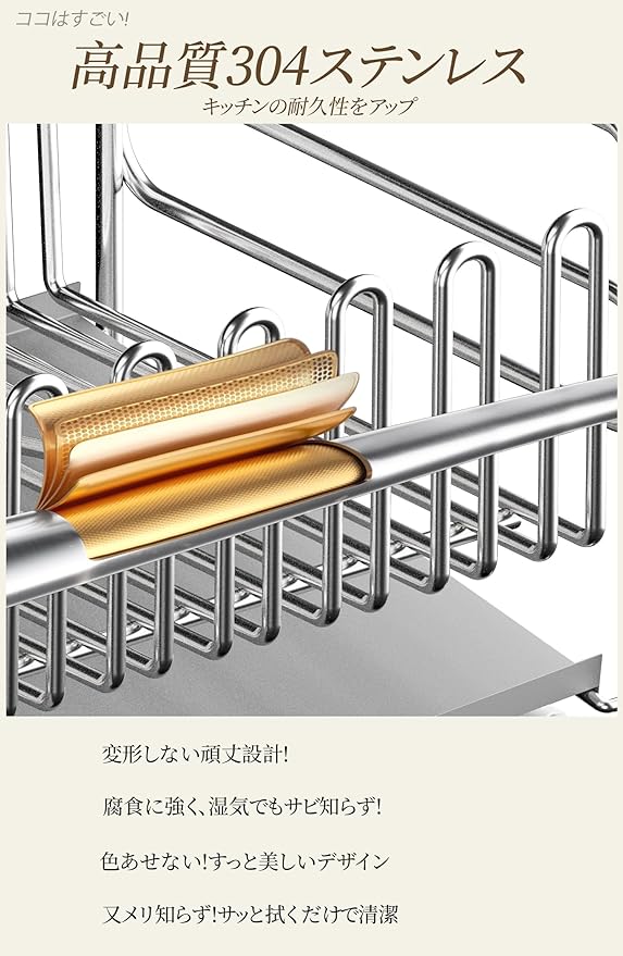 錆びにくく耐久性抜群:多くの購入者が水切りラックの錆びを心配していますが、ADBIUの水切りラックは高品質ステンレスを採用し、長期間使用しても錆びの悩みを解消します
