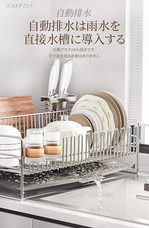 見た目の美しさも重視:実用性だけでなく、デザイン性も求める方に。ADBIUの水切りラックはシンプルでおしゃれなデザインで、どんなキッチンにも調和し、スタイリッシュな雰囲気を演出します