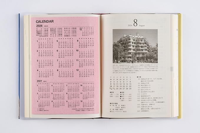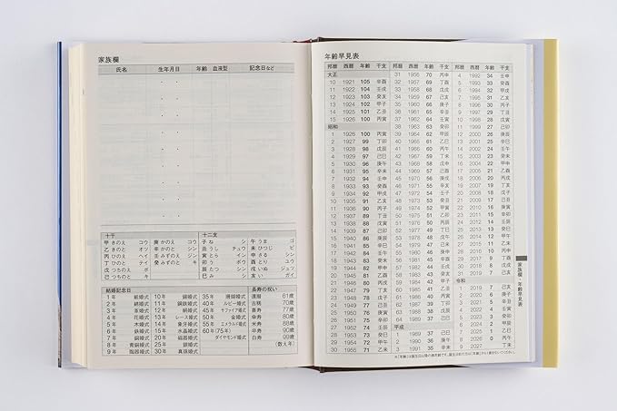 【商品詳細2】表紙タイプ:上製 ●刷色:1色刷 ●ページ数:480頁 ●スペック:旧暦入り ●付録:年齢早見表,カラー世界・日本地図,カラー歴史年表,地下鉄路線図,常用漢字表,非常時への備え,手紙の慣用句,贈答の控え,金銭出納録,年間決算表,アドレスメモ ●別冊:なし