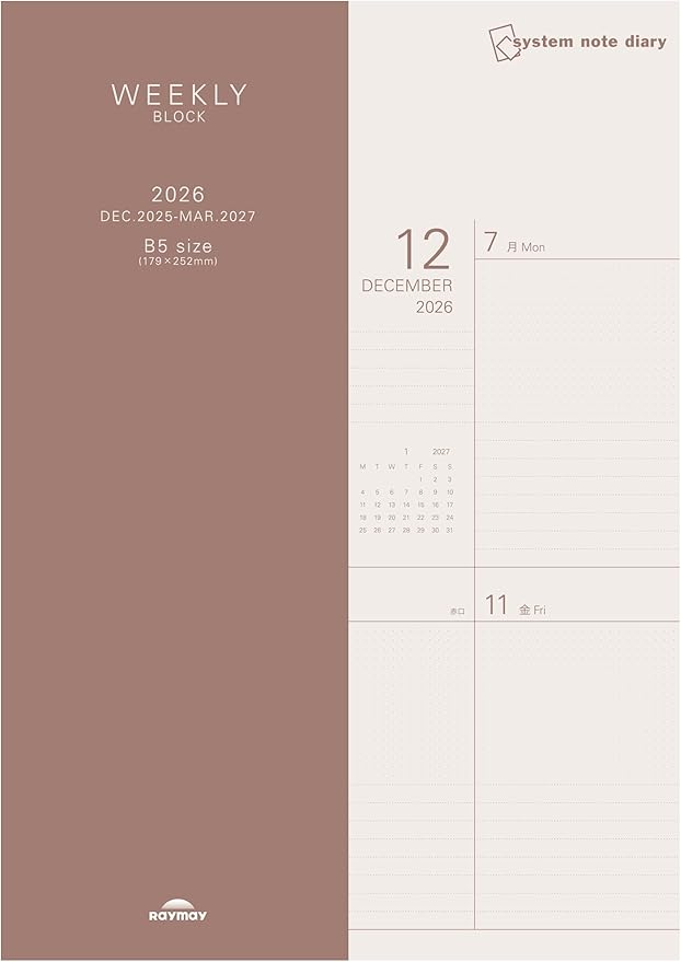 商品名:レイメイ藤井 手帳 2026 スケジュール帳 システムノートダイアリー ウィークリー ブロック B5 RFDR261032025年 12月始まり