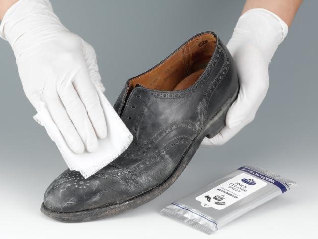 人気商品【モールドクリーナー】に使い捨てのウェットシートタイプが登場です。●用途:スムースレザー(表革)の靴、パンプス、ブーツ、スニーカー、サンダル、バッグ、ベルト、財布、手帳等 ●使用法:・シートを一枚ずつ取り出してご使用下さい。・モールドクリーナーシートで皮革製品の表面を軽く拭いてください。・靴の中も軽く拭くのおがオススメです。・まだカビが残っているようでしたら数回、新しいモールドクリーナーシートを一枚取り出して表面を拭く作業を繰り返してください。・5~7日間風通しのいい日陰で保管してください。カビが多い場合はモールドクリーナーシートで拭いた後で別売りの【M.モゥブレィ プレステージ モールドクリーナー】をご使用頂くとより効果的です。・使用後は必ず手を水で良く洗ってください。●注意:※スエード、ヌバック等の起毛皮革製品やヌメ革及び爬虫類革には使用できません。※モールドクリーナーシートを使用しても皮革製品の保管場所の湿気や温度等の環境によってはカビが再発する可能性があります。※シミや色落ちする比較もございますので予め目立たないところでテストしてからご使用ください。※子供の手の届かない場所に保管してください。※使用後は乾燥を防ぐためフラップをしっかりと閉じてください。※水には溶けませんのでトイレには流さないでください。※万が一使用後に皮膚に異常を感じた場合は水で良く洗い流した後、専門医に相談してください。